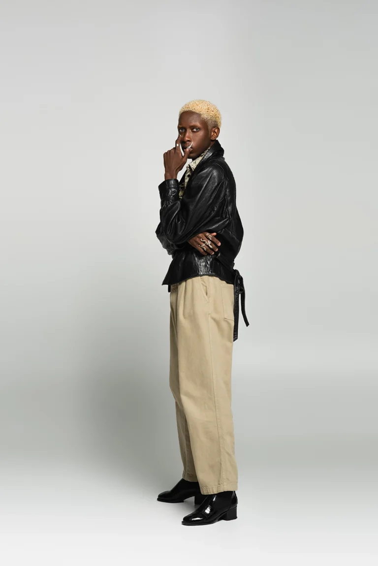 The Vintage Shadow jacket exudes timeless appeal with its relaxed fit and classic leather craftsmanship. Made from soft yet durable leather, this jacket features a slightly oversized silhouette, perfect for layering over casual or formal outfits. The subtle shine and draped effect give it a modern twist on a retro look, while the comfortable cut ensures it’s both stylish and wearable. Whether you’re going for a laid-back or dressed-up style, the Vintage Shadow jacket adds an effortlessly cool vibe to any wardrobe.